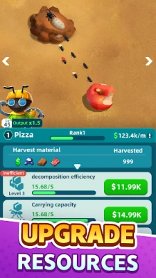 Through every forage and adventure, you can not only enhance your ant army but also easily earn resources for: