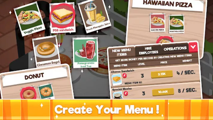 - Upgrade your cafe and equipments to unlock lots of food recipes and ingredients