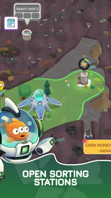 In order to pick up trash, you need to construct robots! Merge them to get eco robots of a higher level. If you want to become the idle tycoon & richest manager in this universe, you should buy more and more robots!