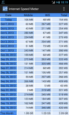 - Separate stats for Mobile network and WiFi network.