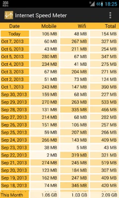 Internet Speed Meter displays your internet speed in status bar and shows the amount of data used in notification pane. This helps you to monitor network connection anytime while using your device.