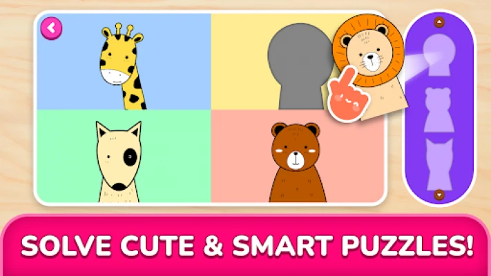 Simple puzzle levels help toddlers and preschoolers learn through play.