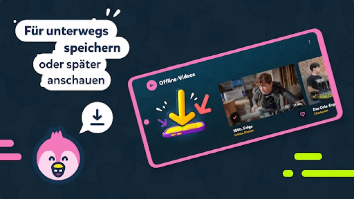 Du bist unterwegs mit deinen Kids und hast weder WLAN noch ausreichend mobile Daten, um deine Lieblingsserie anzuschauen? Speicher einfach vorher Videos in deinem Offline-Bereich. So können Kids mit der KiKA-App jederzeit und überall unser Kinderprogramm schauen – egal ob zuhause oder unterwegs.