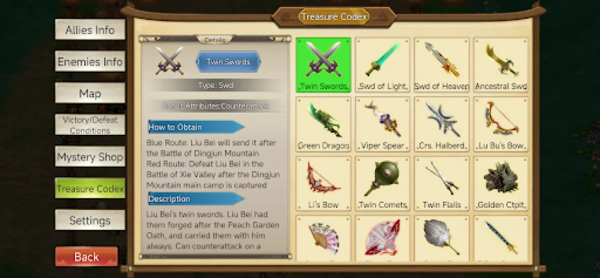 Mythic/Fantasy Route: Zhuge Liang is controlled by a Demon King and plots against Liu Bei, joining Eastern Wu to fight Cao Cao. In the end, Cao Cao triumphs and unites the realm. In the mythic ending, you can recruit the legendary general Guan Yu, famed throughout the Three Kingdoms.