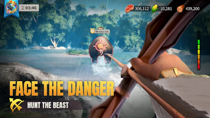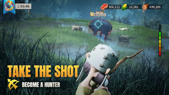 Hide, aim and attack! Every hunt will give you valuable resources to help you build better weapons and tools and to become a better hunter. Get better at hunting and build your base!