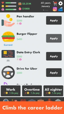 💼Get a job and climb your way to the top, or buy a car and drive for Uber