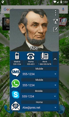 Mad Contacts Widget is a great looking contacts / call widget. You can call, sms, email, send skype, whatsapp or viber messages or edit your selected contacts straight from your home screen!