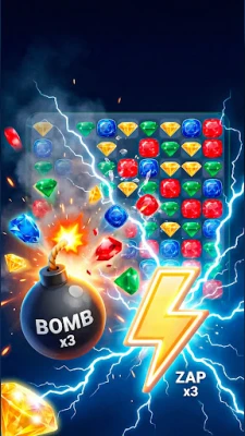 ⚡ Zap: Releases a powerful lightning bolt to clear entire rows of gems.