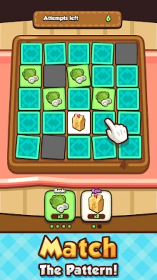 Part of any chef’s job is to find the highest quality ingredients available! To cook the best dishes you’ll have to visit the market. But there’s a catch - you’ll have to win your ingredients in a card game. You are given 10 attempts to flip over cards and discover the ingredients you want, try not to lose… you need ingredients to cook with!