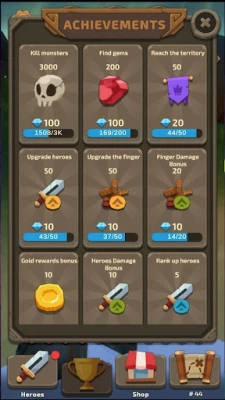 Click on the creature to damage it. Get coins for victories. Hire and upgrade heroes who will deal automatic damage to creatures. In each territory you will come across bosses, the time to fight with them is limited. Also collect gems, various combinations of which give bonuses to damage or rewards.