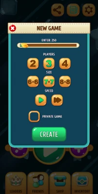Three field sizes. For online games, fields 6x6, 7x7, 8x8 are available.