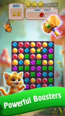 The objective of "Meow Match Three" is simple yet captivating: players must match three or more identical gems vertically or horizontally to score points and progress through increasingly challenging levels. With each successful match, the cats will purr with delight, adding to the overall ambiance of the game.