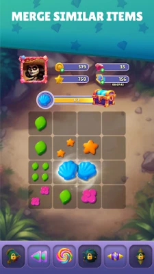 In our unique gaming experience, you'll be sliding and merging various items on your 4x4 grid, such as fish, crowns, donuts, stars, shells, and leaves. The magic happens when two identical items merge and transform into a new, more valuable item, earning you gold coins in the process!