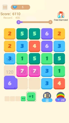 Observe the current numbers below. Clicking the values in the grid will increase or decrease them. When three blocks of the same size are adjacent to each other, they will be eliminated. The larger the number or the more blocks you eliminate at one time, the higher the score you get. Reach a certain score to level up.