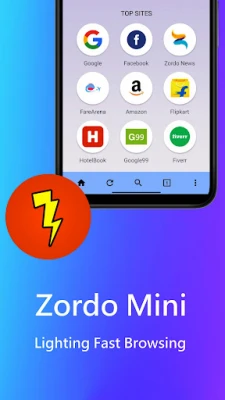 ► Lightning Fast Browsing Speed : Zordo Mini Browser promises you a lighting fast browsing experience!