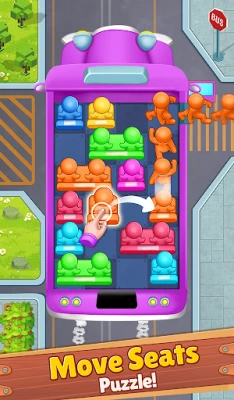 All the seats will move in any direction; only the grey seats will not move, so the game looks more challenging.