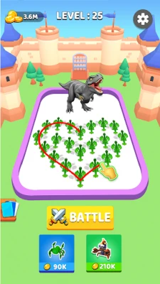 Build your own strategy to merge dinosaurs and fight against enemies! You must develop a unique merge strategy to win battles in these fun dino strategy games. As a fan of dinosaur games, dive into Merge Monster Battle Simulator Games now.