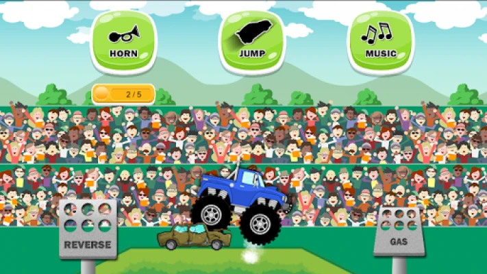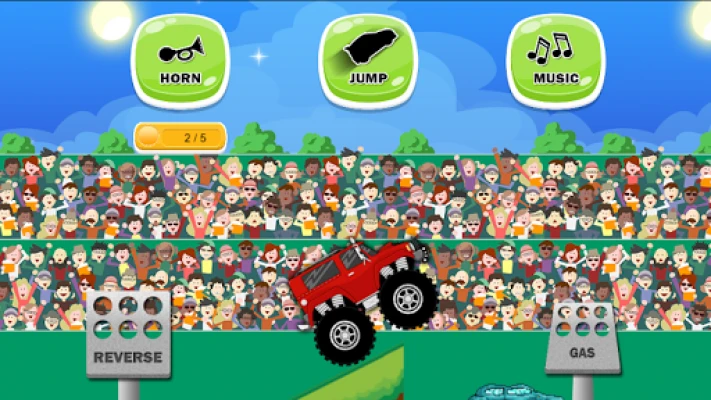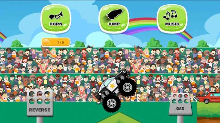 if your children love monster trucks, then this is for them! a simple monster truck racing game for young children and toddlers between the age of 2 and 7. big buttons make it easy for the child to play the game, including the horn, jump, music, accelerate and brake. no difficult obstacles so the child can always reach the end of the level. the car wont flip!