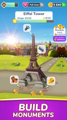 Welcome to Monument Master! Solve match-3 puzzles, build monuments, and decorate your mansion. Monument Master - Match 3 puzzle game that will keep you hooked for hours! Embark on an adventure of matching 3 tiles and building your own monument wonder! 🌎