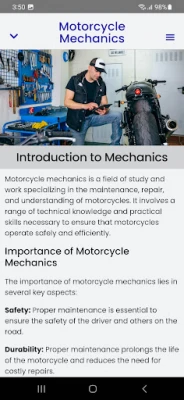 One of the most important aspects of motorcycle mechanics is safety. We will teach you best practices to stay safe while working on motorcycles and how to use tools efficiently and responsibly.