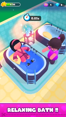 Upgrade treatment rooms, hire staff, speed up service, and unlock new beauty stations. Every improvement helps you serve more guests and earn more. The more you upgrade, the bigger your spa empire grows.
