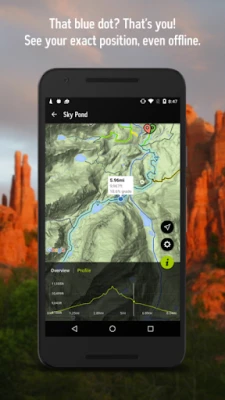 • No cell signal needed. The data is available offline, and your phone uses its built-in GPS to show your location.