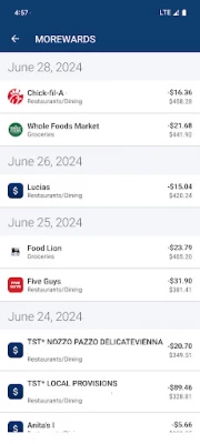 • View credit card reward points and redeem cash rewards.