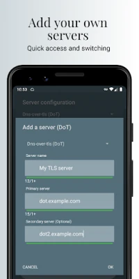 Nebulo is a DNS changer which implements DNS-over-HTTPs and DNS-over-TLS and DoH3 to safely send your DNS requests to the target server. This way only you and the DNS server are able to read the requests you are sending.
