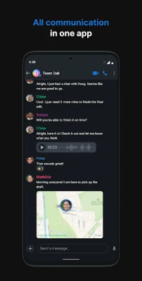 Messaging, voice and one to one video calls, file sharing and an array of integrations, bots and widgets.