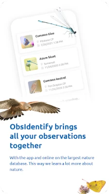 Recognize nature in one click! Take a photo in Europe or the Dutch Caribbean and find out which species it is. Collect all your wildlife observations in the app. You'll be rewarded with tips to find new species, earn badges, and be invited to join challenges. Create groups with colleagues, family or friends, to share your stunning nature observations. Your observations, and those of others, contribute to biological research and knowledge about nature. Every observation counts!