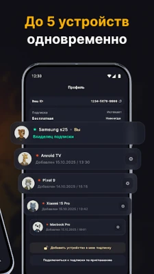 Семейная подписка — один аккаунт до 5 устройств: смартфон, планшет или ноутбук.