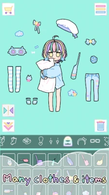 4. Decorate your cute girl using lots of clothes, items, speech bubbles and letters.