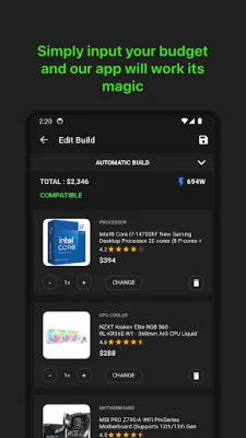 - Automatic Builder: Generate the best performance for your budget with market-rated parts.