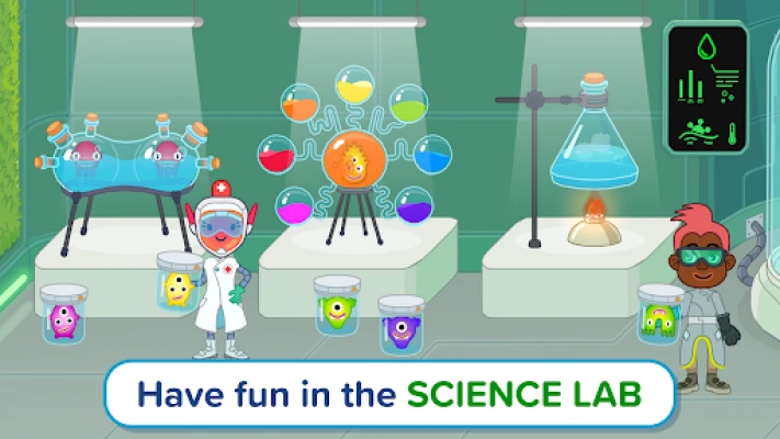 Same as in the first edition of Pepi Hospital, this flu clinic of the future encourages you to create your own stories and is also filled with a wide range of new activities: become a doctor and treat patients with the latest interactive devices and prevent infections with anti-virus vaccines; play the role of a scientist and experiment with bacteria using various science lab equipment; or take on the role of a patient and receive care from adorable Pepi robots.