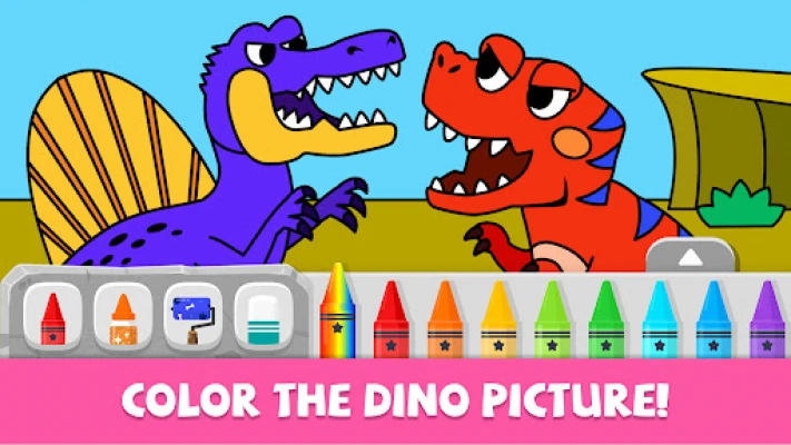 • Brush dino teeth, color pictures, and play puzzles in fun dino games for kids.