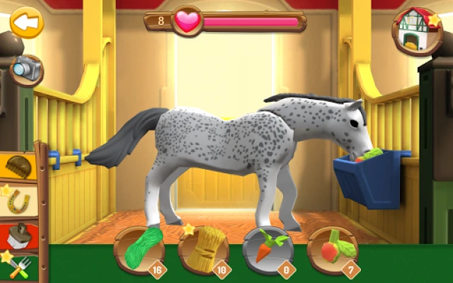 • Feed and groom your four-legged friends. • Style your horses with colorful saddles, head collars, and bandages. • Choose from seven different coat colors. • Take cute snapshots of your favorites.