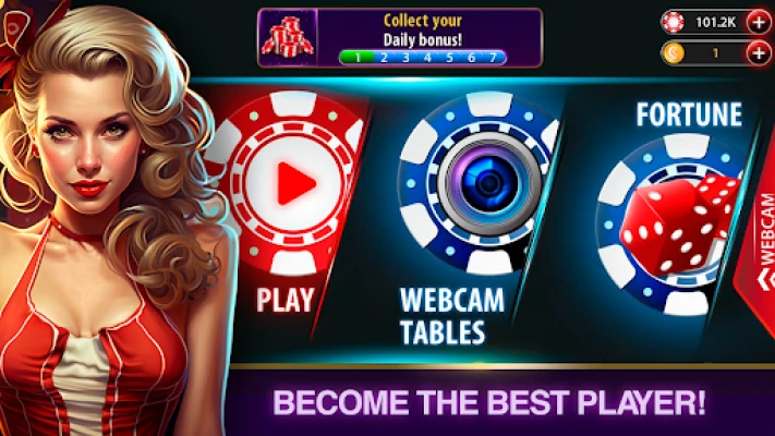 With the webcam live mode, you can use your phone camera to join the video poker table and interact with other holdem poker players in real-time. Chat with them, bluff, and read their reactions as you try to win big.