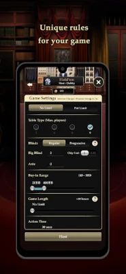 It's as simple as creating a private room or tournament clock/timer, setting the rules (No Limit Hold'em, Blackjack, OFC-13 card poker (Pineapple Poker), Short Deck Poker, Pot-Limit Omaha, 7 card stud, Rummy, Round of Each, Sit-and-go, MTT and so on), and dealing out the cards. It's like having poker night in the palm of your hand, anytime, anywhere!