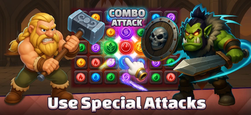 Enter the world of Puzzle Warrior: Dungeon Fight – a thrilling offline RPG where puzzles unleash power! Match gems to hit enemies, strike with your sword, and conquer every dungeon. Face tough knights, test your defense, and rise as a fearless warrior. Each puzzle move fuels your action – create combos, trigger power-ups, and defeat waves of enemies. Unlock multiple heroes, discover legendary weapons, and progress through challenging levels. Whether you love fighting games or clever puzzles, Puzzle Warrior blends both into one epic adventure. Play offline and prove your strength in this unique match-3 RPG!