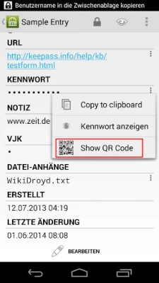 - display passwords, usernames etc. (or the full entry) as a QR code