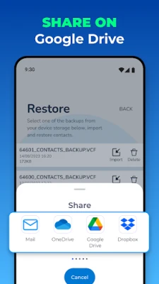 ✔️ Backup and restore contacts in a few seconds.