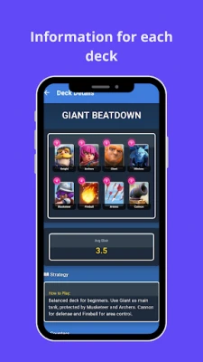 The app provides deck ideas, strategies, and general information inspired by a popular card battle game.