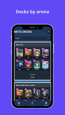Features include: • Deck lists organized by arenas • Deck details and card combinations • Easy-to-use filters to explore different play styles