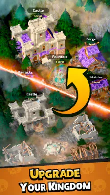 * As the legendary fearless King, you take on the responsibility of rebuilding the devastated Kingdom. Improve the King's abilities in the Castle, collect legendary armor in the Forge and level up your heroes in the Barracks to guarantee your victory! The Magic Tower will allow you to learn spells and discover new magical heroes.