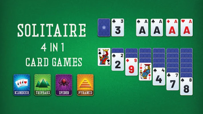 Four game modes: Choose from Klondike, TriPeaks, Spider Solitaire, or Pyramid, each offering a unique take on classic solitaire games.