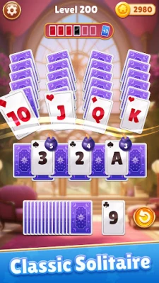 Complete 3000+ solitaire levels to earn furniture, wallpapers, flooring, and decorations. Every victory moves your renovation forward!