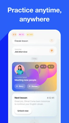 * Personalized conversations at your speaking level, relevant topics that focus on your life.