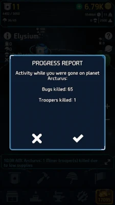 ๐ Idle Progression: Your mission continues even when you're offline. Return to your game to find your troopers have been busy fighting bugs and collecting crystals for you!