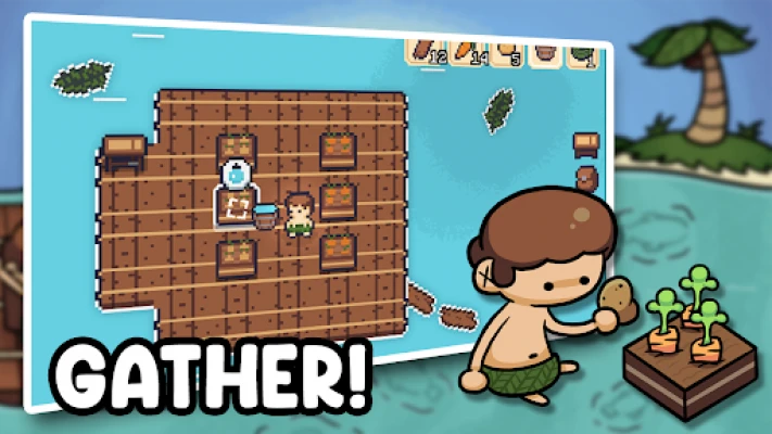 In addition to building and crafting, you can also fish for food, farm to grow crops on your raft, and gather resources like wood, leaves, and rocks.