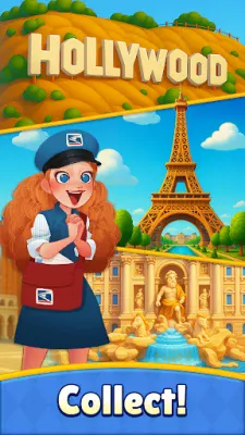 As you progress, you'll collect unique postcards from each place — visual keepsakes of your journey across stunning, themed environments. No timers, no pressure — just pure puzzle and design fun.